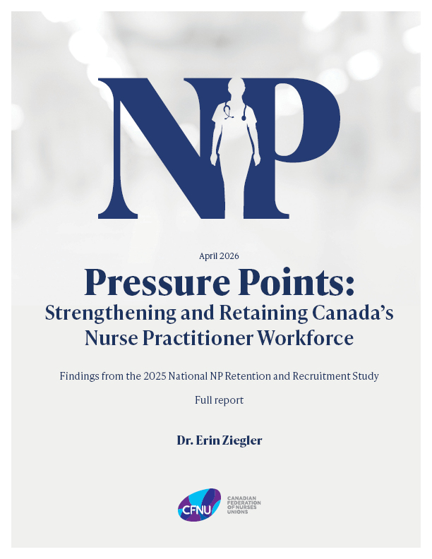 Pressure Points: Strengthening and Retaining Canada’s Nurse Practitioner Workforce is one of the largest pan-Canadian studies of nurse practitioners (NPs) to date. Drawing from a survey of more than 1,300 Canadian NPs, the report reveals a workforce deeply committed to patient care but under growing strain. More than one-third of NPs are considering leaving their current roles at a time when one in five Canadians lack access to a primary health care provider. It is essential that Canada invest in NPs through supportive work environments, fair compensation and strategic workforce planning to ensure NPs and the Canadian health care system thrive.